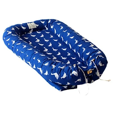 This is a cosy nest from dackis & goosie. has organic cotton cover and has a comfortable polyester lining. nice pattern adorns baby cocoon The baby nest is openable in one side thanks to practical drawstrings and buttons, which makes the space adaptable as baby grows and becomes larger A lovely place for your baby to rest and play. a baby nest provides added safety to the child and essential safety for you as a parent