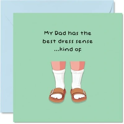 MAKE YOUR DAD SMILE WITH THIS BEAUTIFUL BIRTHDAY CARD: This exceptional quality Dad birthday card for His shows the design My Dad has the best dress sense… kind of. If you are looking for a beautiful birthday card for him, then then this happy birthday Dad card is bound to make him smile. Not just a birthday card for Dad this could also be a Fathers Day card for Dad. WHAT DO YOU GET: The card is printed on one side and inside bears the message 'Love You Dad' with space to allow you to write your very own message. The unique fun design is printed on a specially sourced and environmentally responsible board. At 360 microns thick the natural white one-sided gloss board has a quality look and feel. Supplied with a coloured gummed envelope to complement the design and ready to be sealed and sent in the post. NO INK SMUDGES: There is nothing worse than writing inside a card to find that the shiny surface makes the ink smudge. This is why we use a high quality one sided coated board. The uncoated side will absorb more of the ink from your pen to make smudging a thing of the past. Dad Fathers Day cards, Dad Birthday cards from Son. SIZES: Greeting Card = 145mm x 145mm, Envelope = 155mm x 155mm, Card Thickness = 360 micron. Happy Birthday Dad, Dads Birthday card, Dad cards Birthday, Birthday card Dad, happy Fathers Day Dad from Daughter gifts, happy Birthday Dad card, Fathers Day cards Dad, Dad gifts from Son, happy first Birthday as my Dad. MADE AND QUALITY CHECKED IN THE UK: We print and manufacture all our product right her in the UK so you can be sure of a fast turnaround and a product that is expertly made. Using environmentally responsible premium board our card is conscious of the responsible management of the world's forests - happy birthday card Dad, Dad birthday cards.