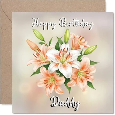 Daddy Birthday Card Floral Flowers Happy for from Son Daughter, 145mm Lilies Bday Greeting Cards