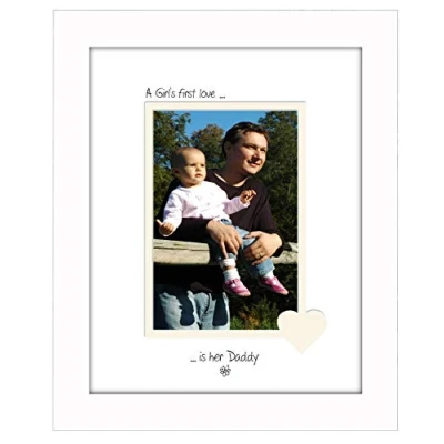 Daddy Photo Frame A Girl’s First Love is Her Double Mounted Portrait 9 x 7 (White Finish White Mount Cream Inside)