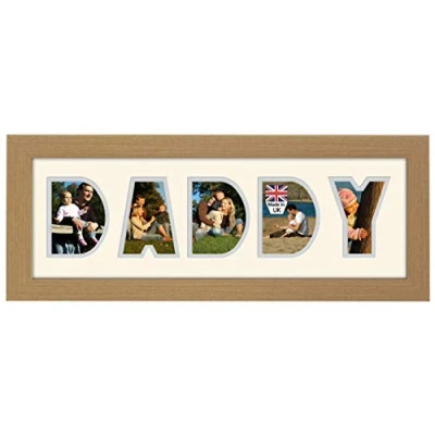 Daddy Photo Frame Word Light Oak Wood Finish Birthday Picture Gift Present