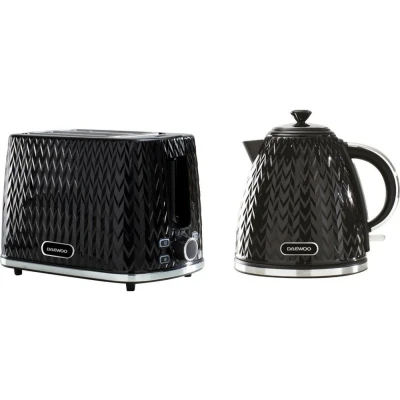COMPLETE SET - Includes a matching 3000 Watt jug kettle and 2 slice toaster, with textured Argyle pattern, adds a touch of style to your kitchen RAPID BOIL - The 3kw concealed heating element brings this kettle to the boil quickly, so you'll never be waiting long for your next hot drink REMOVABLE & WASHABLE LIMESCALE FILTER - Make cleaning your kettle easy and mess-free - This kettle features an easy-clean removable & washable limescale filter HIGH BREAD LIFT - Stay safe with the high bread lift feature. Check and remove your perfectly browned toast without damaging your toaster or making a mess EASY CLEAN - Use the convenient slide out crumb tray for mess-free toasting and easy cleaning. The crumb tray is able to collect toast crumbs for a tidy kitchen worktop, Weight: 6.1068046574 Pounds, Manufacturer: Daewoo