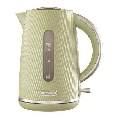 JoybuyThe Daewoo Cascade Kettle 1.7L in Sage Green features a stylish ribbed design and fast 3kW boiling, with user-friendly touches like a 360° swivel base, removable limescale filter, and safety functions. It’s ideal for families, offering convenience, durability, and modern elegance for any kitchen.