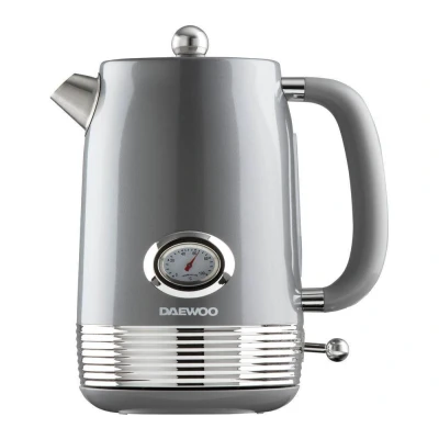 Stylish Retro Design – Enhance your kitchen with this beautiful smoked grey finish kettle, featuring a classic temperature gauge and 1950s-inspired styling perfect for modern and traditional homes Powerful 3kW Rapid Boil – Boil water in minutes with a 3000W heating element, ideal for busy mornings, quick coffee breaks, or hosting guests effortlessly Generous 1.5L Capacity – Make up to 6 cups at once, perfect for families, office tea rounds, or entertaining friends without constant refilling User-Friendly Features – Includes boil-dry protection, a 360° rotational base for easy use by left- and right-handed users, and an easy-view water gauge to fill precisely Durable and Easy to Maintain – Built with quality materials, simple cleaning instructions, and a recommended monthly descaling process to prolong kettle life in hard water areas, Weight: 2.20462262 pounds, Manufacturer: Daewoo