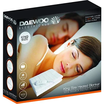 Daewoo Electric Blanket With 3 Heat Settings, Over Protection, Detachable Controller, Heated Blanket, King