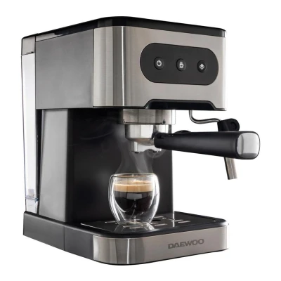 Daewoo Espresso Coffee Machine, Manual, 20Bar Pressure With Steam Wand, Barista Quality Made At Home Ground Coffee, 1.5 Litre Water Tank, Accessories Included