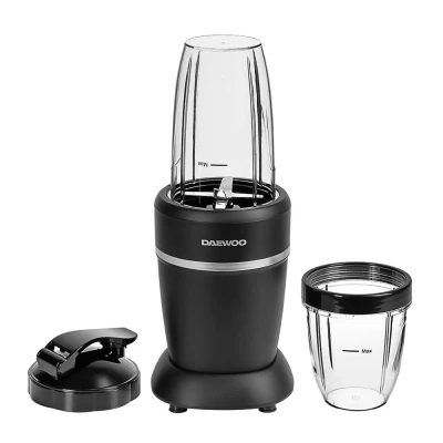 Currys- With a 1000 W motor, this Daewoo blender blitzes anything from chunky nuts to frozen berries in a snap- Overheat protection automatically stops your blender when it gets too hot- The 300ml cup with a flip-top lid lets you blend a quick morning smoothie and drink straight from it- Measure all ingredients for your family batters with its 600 ml beaker - Thanks to its non-slip feet, your blender stays right in place when in use- Cleaning up after is a breeze - the blades and cups are easy to wash