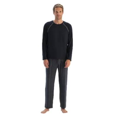 Dagi Men's Raglan Sleeve Detailed Pajama Set, Navy, M