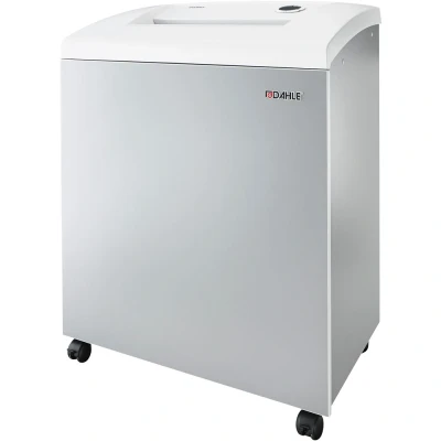 Innovative document shredder with MHPTechnology® for superb performance - without any oil whatsoever. User-friendly document shredder for large volumes. Unique DAHLE CleanTEC® filter system. Innovative MHP® (Matrix High Performance) cutters: high-quality compound steel cutters that are guaranteed to last. Patented manufacturing process preserves resources by considerable saving of raw materials compared to a conventional production of cutting cylinders. Resource-conserving production with considerable raw material savings as compared to conventional cutters. oil- and maintenance free operation. Systematic use of perfectly matched components ensures optimum functionality and shredding performance. Clearly designed, user-friendly control panel. Electronic start-stop function. Convenient automatic reverse function. Convenient feed and reverse function. Automatic motor cut-out. Energy-saving sleep mode. Powerful motor. Extremely quiet operation. Separate CD feed and waste container. High-quality wooden cabinet. Wide-opening doors. Convenient swivel casters. Separate main switch. IEC power connector. 11 strong waste bags included. Dimensions (H x W x D): 960 x 734 x 511 mm. Sheet Capacity = 20 Sheets per Pass. Sheet Size = 4.0x40mm. Shred Type = Cross Cut. Din Level P-4. Throat Width = 400mm. Bin Capacity = 60 litres. Motor = 650 watts. Shred Speed = 5.7mm per minute. Operating Noise Level = 52dB. Width = 734. Depth = 511. Height = 960. Height = 960. Machine Warranty = 2 years