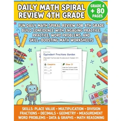 Daily Math Spiral Review 4th Grade: A Complete Grade Workbook with Practice, Review, Worksheets, Word Problems, Fractions, ... & Essential 4 Skills Practice