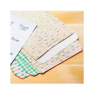 Set of printed paper envelopes with assorted designs. The envelope flap is not self-adhesive, so it is necessary to close it with a label or other adhesive method.