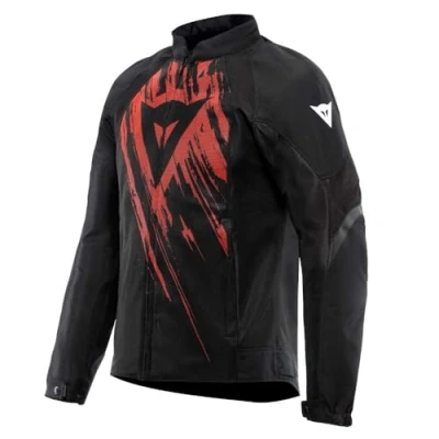 Dainese Air Graphics Tex Jacket, Summer Motorcycle Ventilated and Lightweight, with Soft Protectors on Shoulders Elbows, Men, Black/Red Tarmac, 58
