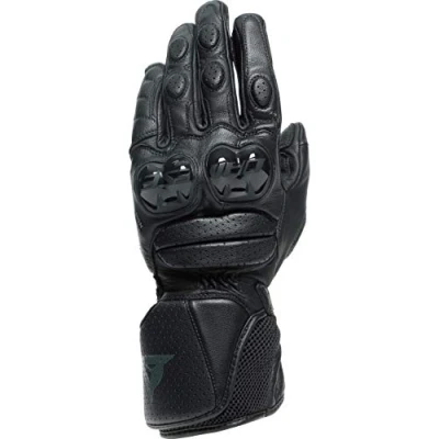 FEATURES: Dainese Smart Touch; Soft inserts. ERGONOMICS: Adjustable cuff band; Elasticized insert on outer thumb; Elasticized inserts; Pre-curved fingers; Anti-skid strap MAIN MATERIAL: Sheep skin PERFORMANCE SHOCK: Gloves certified according to CE - Cat. II - EN 13594/2015 cat. II level 1; Polyurethane inserts on knuckles; Reinforced sheepskin palm