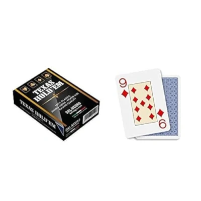 Description: Texas Hold'em poker deck used in casinos around the world. All 55 cards are made of PVC. Robust cards, suitable for intensive and constant use. The Texas Hold'em poker deck also comes with a card case. Card Size 63mm x 88mm Material: The playing cards are made of PVC. The grammage is 315 g/m². Thanks to the special painting techniques, the cards feel soft and durable and feel very elegant. Ideal for playing poker, burraco, black jack, scale 40, ram and many other games..A PERFECT GIFT:The Texas Hold'em Casino Quality Blue is perfect for professional players and beginners. An illustration card with the rules of poker Texas Hold'em is provided. International products have separate terms, are sold from abroad and may differ from local products, including fit, age ratings, and language of product, labeling or instructions., Manufacturer: Dal