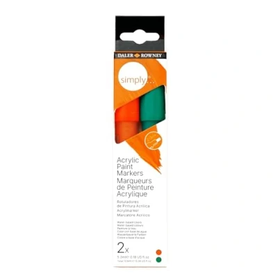 Daler Rowney Simply, Acrylic Paint Markers, Cardboard Case, Set of 6 Assorted Fluorescent Colours
