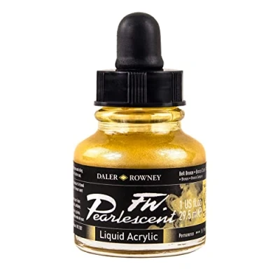 Daler Rowney FW Acrylic Ink, Glass Bottle with Dropper, 1oz 29.5 ml, Bell Bronze