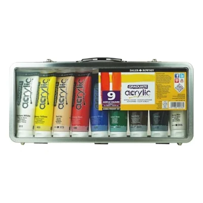 Daler Rowney Graduate 120ml Acrylic Paint Set, 9 Assorted Colours, High Lightfastness, Water Based, Solvent Free, Ideal for Student Artists & Hobbyists