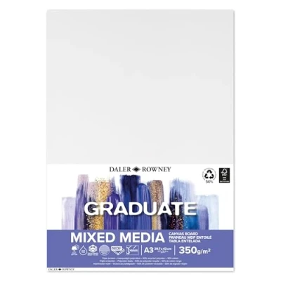 Daler Rowney Graduate Canvas Panel A3 29.7 x 42cm, 350gsm, Acrylic & Oil Painting, Mixed Media, for Student Artists Hobbyists