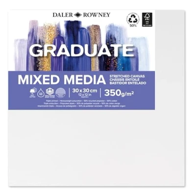 Daler Rowney Graduate Stretched Canvas 30X30CM/12X12IN, 350gsm, Acrylic & Oil Painting, Mixed Media, for Student Artists Hobbyists