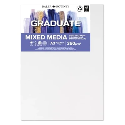 Daler Rowney Graduate Stretched Canvas A3 29.7 x 42cm, 350gsm, Acrylic & Oil Painting, Mixed Media, for Student Artists Hobbyists