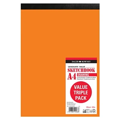 Daler Rowney Graduate Value 120g A4 Sketching Pad, 30 Sheets, Pack of 3, Ideal for Art Students