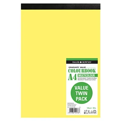 Daler Rowney Graduate Value 150g A4 Pad in Assorted Colours, 30 Sheets, Pack of 2, Ideal for Art Students