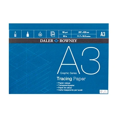 Daler Rowney Graphic Series Smooth Surface 90gsm A3 Tracing Paper Pad, Glued 1 Side, 50 sheets, Ideal for Professional Artists & Students