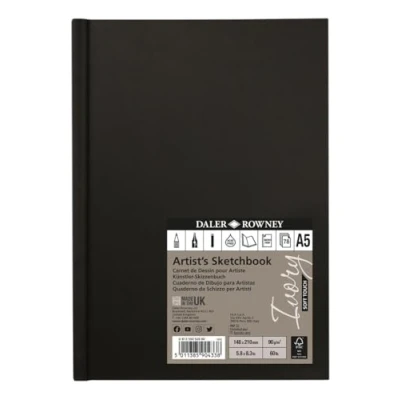 Daler Rowney Ivory Sketchbook, Soft Touch Harbound, 90gsm, A5 Portrait, Natural White, 78 Sheets, Ideal for Professionals