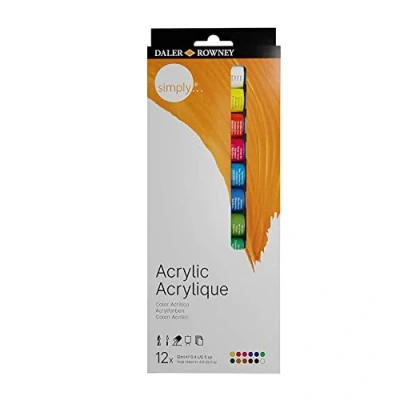 Daler Rowney Simply 12ml Acrylic Paint Set, 12 Assorted Colours, Ideal for Entry Level Artists & Hobbyists
