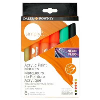 Daler Rowney Simply, Acrylic Paint Markers, Cardboard Case, Set of 6 Assorted Metallic Colours