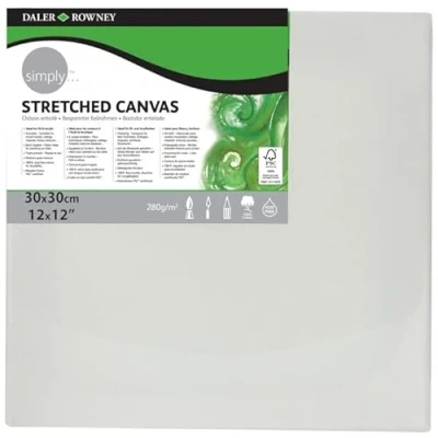 Daler Rowney Simply Stretched Canvas, Medium Grain, 250 gsm, 16mm Deep, 12 x 12in 30 cm, White
