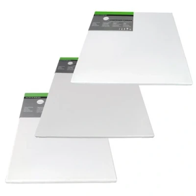 250gsm, medium grain, 100% cotton canvas Triple primed, acid free and ready for use Back stapled for clean edges Ideal for oil & acrylic, mixed media, collage, impasto & more Ideal for budding and beginner artists alike