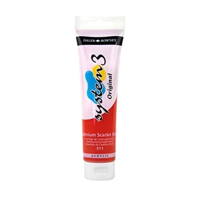 Daler Rowney System3 Acrylic Paint, Plastic Tube, 5.07oz 150 ml, Cadmium Scarlet Hue