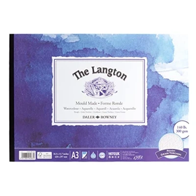 AmazonThe Langton premium rough, 300gsm, watercolour paper Mould made, acid free, natural white, FSC certified paper Fade resistant, archival quality paper, internally and externally sized with synthetic sizing An excellent choice for professional artists.