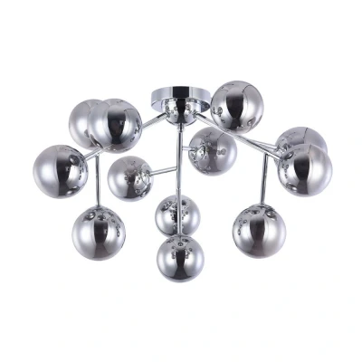 Dallas ceiling light - a glamorous light source with an effective lighting effectTwelve spherical lights made of chrome-coloured glass adorn the Dallas ceiling light, which is ideal for exclusive furnishing of a modern living area. When switched off, the extravagant look makes it a real eye-catcher, but when the light is switched on, the Dallas ceiling light becomes a real eye-catcher that magically attracts attention. In addition to the fantastic effect of each individual, illuminated glass, the overall effect of the glass lights illuminating each other is added. The result is an almost magical ambience.