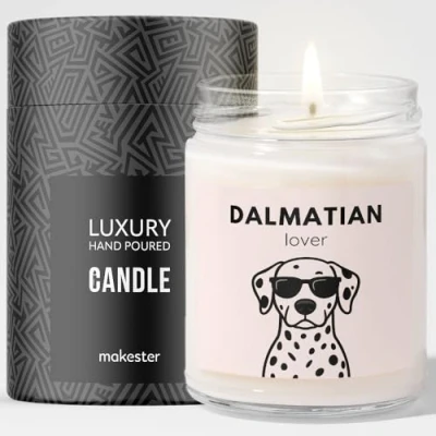 Dalmatian Gifts Luxury Soy Wax Candle Vanilla, Jasmine, Sugared Almond Dogs in Shades Makester
