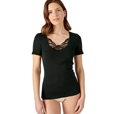 Damart Tee Shirt Finition Guipure, Women’s T Shirt, Black,