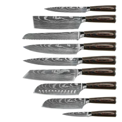Damascus Print 9 piece Knife Set in Luxury Gift Box Shinrai Knives