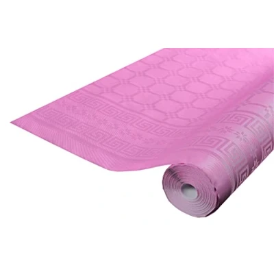 Damask paper disposable tablecloth in a roll 25 M long X 1.18 wide with chic and classic universal pattern pink (bright)
