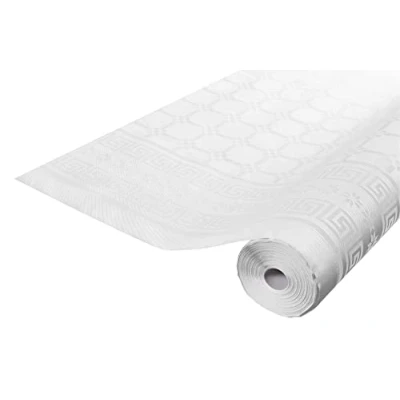 Damask paper disposable tablecloth in roll 25 M long X 1.18 wide with a chic and classic universal pattern white
