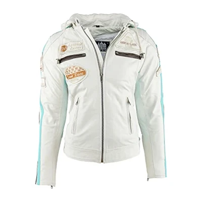 Highest quality and style: our trendy leather jackets are made from high-quality lambskin leather and guarantee protection and comfort under all circumstances. Each motorcycle jacket handmade by us is unique and carefully crafted down to the last detail. Especially when it comes to designing the perfect leather jacket for women, we have been working as real professionals in the motorcycle clothing industry for years Fully removable protectors: the jacket contains protectors for the back, elbows and shoulders. Our jackets are wear-resistant and abrasion-resistant, but also comfortable and breathable. Do you want to use your motorcycle jacket every day, perhaps during a break from driving? All our protectors are removable to ensure maximum comfort! Thanks to a practical YKK zip, the hood is also removable 2 practical inner pockets: we never have enough space on our motorcycle... we all know that! Our women's biker leather jacket has 4 outer and 2 inner pockets to store your most valuable items completely safe and protected from the elements Wear the jacket all year round: ride all year round in your motorcycle protector jacket made of genuine leather. The lambskin makes the jacket warm for the winter season, but the thickness is also ideal for use in spring and summer. You will never have to separate from her Do you worry about the size? Would you like to buy our leather motorcycle jacket for women, but are unsure about the size? Check our size chart under the product images and find out which of our leather jackets suits you best