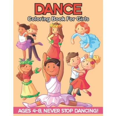 Dance Coloring Book for Girls Ages 4 8: Dancing Illustrations with Ballroom, Ballet, Hawaiian Hula Dances and Cheerleading More! Perfect Gift Little who Love Dancing.