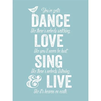 Dance Love Sing Live Blue Art Print Poster Wall Decor 12X16 Inch