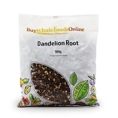 A popular herb for loose tea, Dandelion Root has been used for 1,000â€s of year as a natural & herbal remedy. With an earthy and slightly bitter taste, dandelion root is commonly used as loose herbal tea, but it can also be roasted for caffeine-free alternative to coffee. BuyWholefoodsOnline is not owned by or affiliated with Amazon or Whole Foods Market Suitable for vegans and vegetarians and kosher. This product is now 100% Recyclable