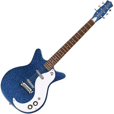 Metalflake Finish for Danelectro's 60th Anniversary, Chambered Shorthorn Shape, Plywood Body w/ Hardboard Top 25" Scale C Shape Maple Neck w/ Pau Ferro Fingerboard Dual NOS+ Lipstick Singe-Coil Pickups, Two Stacked Volume, Two Stacked Tone Controls & 3-Way Toggle Pickup Switch Adjustable Wraparound Bridge/Tailpiece & Die-Cast Tuners Case Not Included