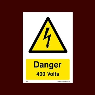 Danger 400 Volts Plastic Sign (WEH35) - Electric Hazard, Voltage, Danger of Death, Cables, Wires, Electric Fence