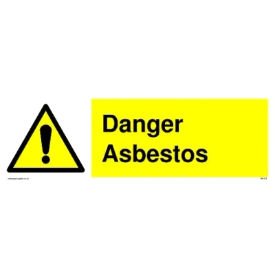 W001 : General This sign is made from vinyl high tack A stickier sticker. Uses a stronger adhesive to make it more suitable for plastic surfaces like Wheelie Bins or where the sticker might get rubbed. 31 landscape Sign Text: Danger Asbestos