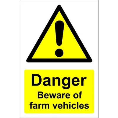 Danger beware of farm vehicles Sign 1.2mm rigid plastic 200mm x 300mm Digitally printed and laminated for extra durabillity Drill and screw in position or use double sided tape to mount onto suitable surface., Manufacturer: KPCM Display
