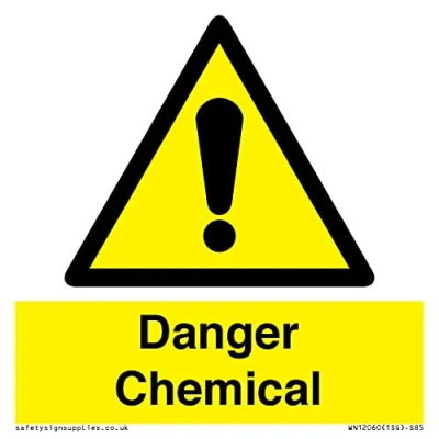 W001 : General Warning This sign is made from plastic semi-rigid 1mm 1mm thin plastic sign, can be screwed, stuck with adhesive, or attached with cable ties. Not suitable for hanging. S85 square Sign Text: Danger Chemical