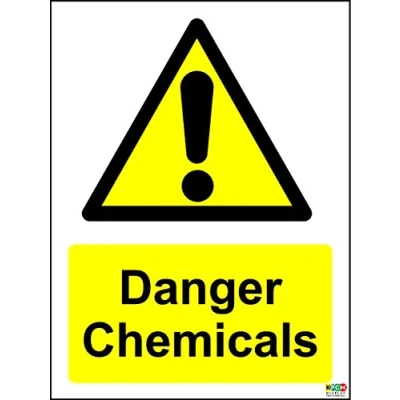 Danger Chemicals sign Self Adhesive Sticker Label Sign 200mm x 150mm Remove backing film and apply to dry, smooth, oil free surface. Digitally printed and laminated for extra durabillity